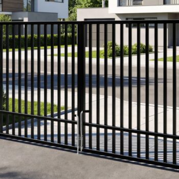 Łącznik przęsła ogrodzeniowego – do przykręcenia – ocynk + RAL9005 – półmat
